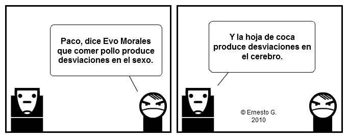 Mi problema es ahora con el pollo. Es que dicen que si uno se lo come, le produce desviaciones en el sexo. No sé si es que el pene a uno se lo joroba o qué. No he entendido la cosa muy bien. A mí me gustaría que el mío se quedara recto, listo para la batalla. El otro día una amiga me invitó a Pollo Tropical y le dije redondamente que no. ¿Y Kentucky Fried Chicken? Tampoco. Menos que menos. Tú ‘tás loca. Nada de pollo. Lo mío es ahora el bisté, las costillas, el pescado. El pollo, ná, qué va.
